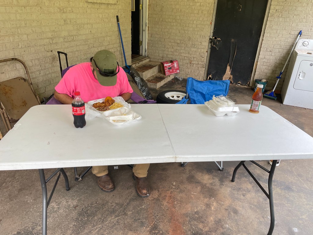 We spent our first holiday at the new house…..working of course. This is our deluxe dining room. We can’t stand the smell or lack of AC inside.