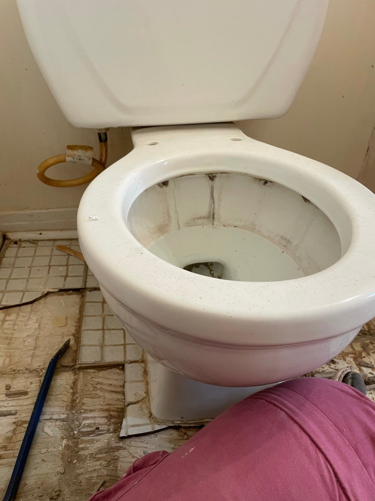 FYI: I am not a bathroom person, the only time I get up close and personal with a toilet (even my own) is when I am cleaning it or sick. So sitting in front of this surrounded by the sights and smells of someone else’s bathroom was not my cut of tea. Renovating is not for the faint of heart or stomach.