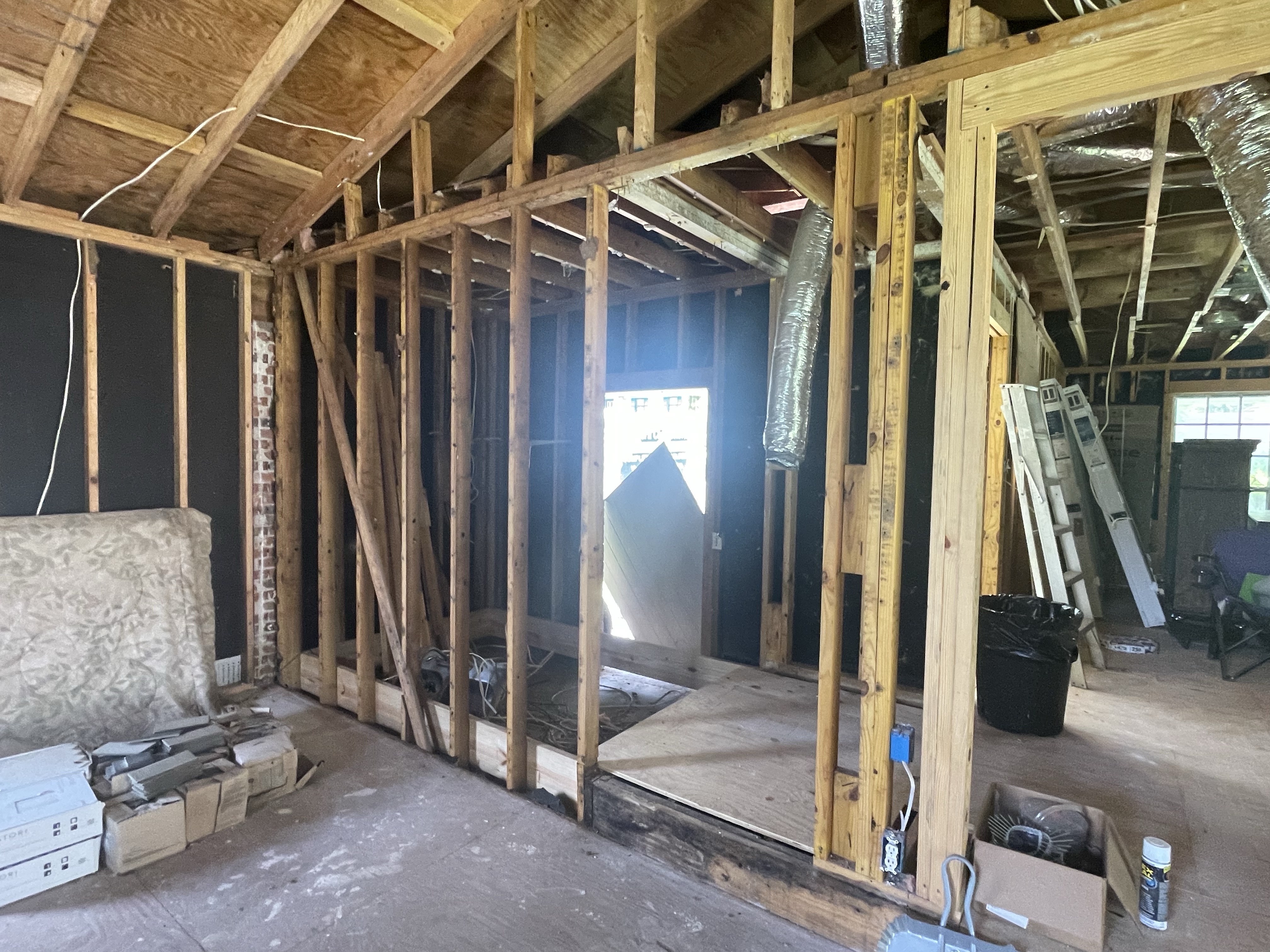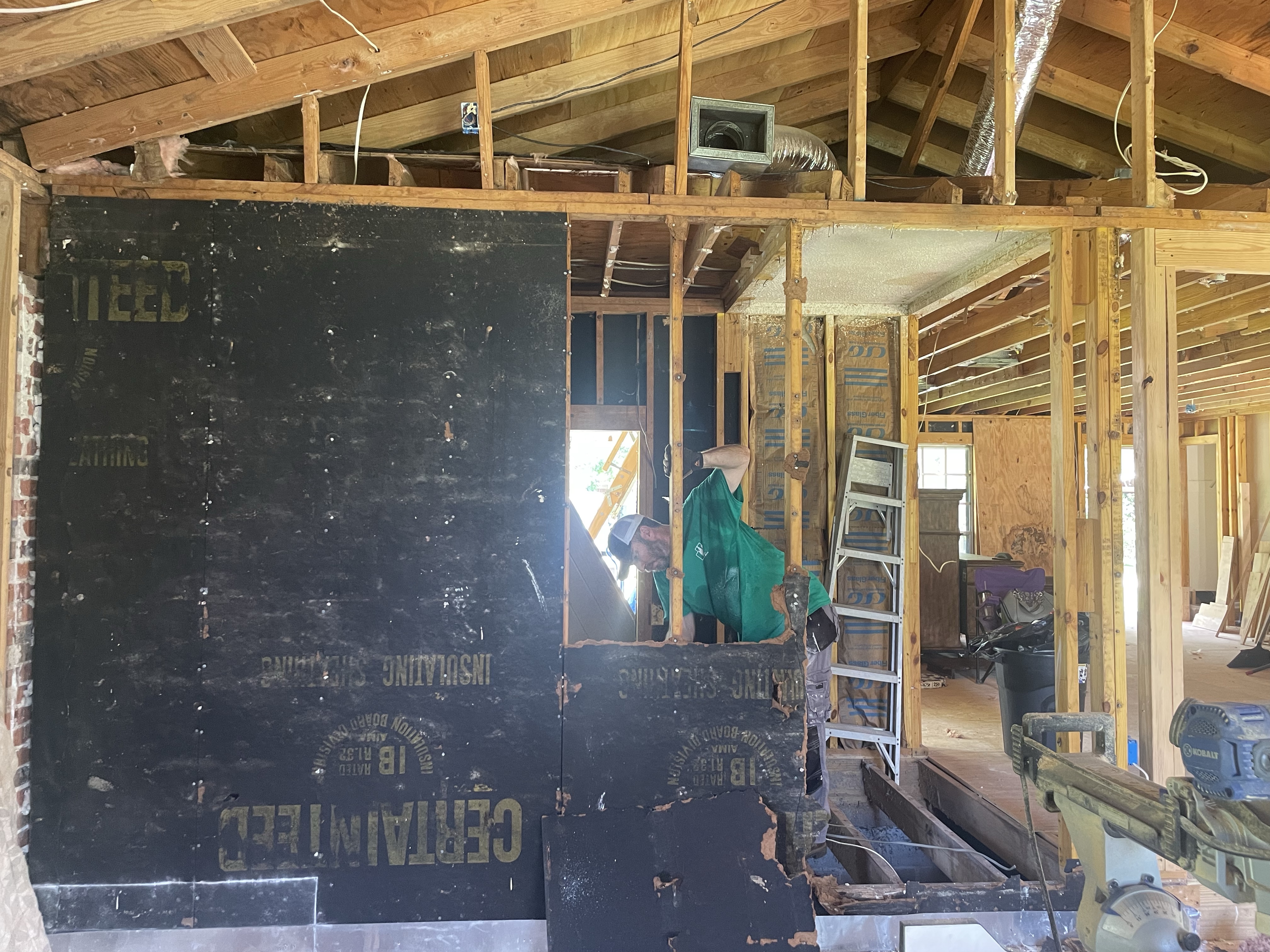 This weekend was the end of demo and the beginning of putting it back together. The attic is completely ready for electrical to be ran (all AC ducts, ceiling vents, and trunk line have been removed). I’m sure at this point our neighbors are amazed at the shear amount of stuff we have drug out of the house. Every weekend for 7 months we have either worked at filling the dumpster or made huge piles beside the road. The new HVAC unit is going under the house so no more ceiling vents. I labeled all electrical going back into the house for Brady. Getting to choose where every switch and plug is going to be is wonderful, but stressful (I’m sure I didn’t account for something!).
