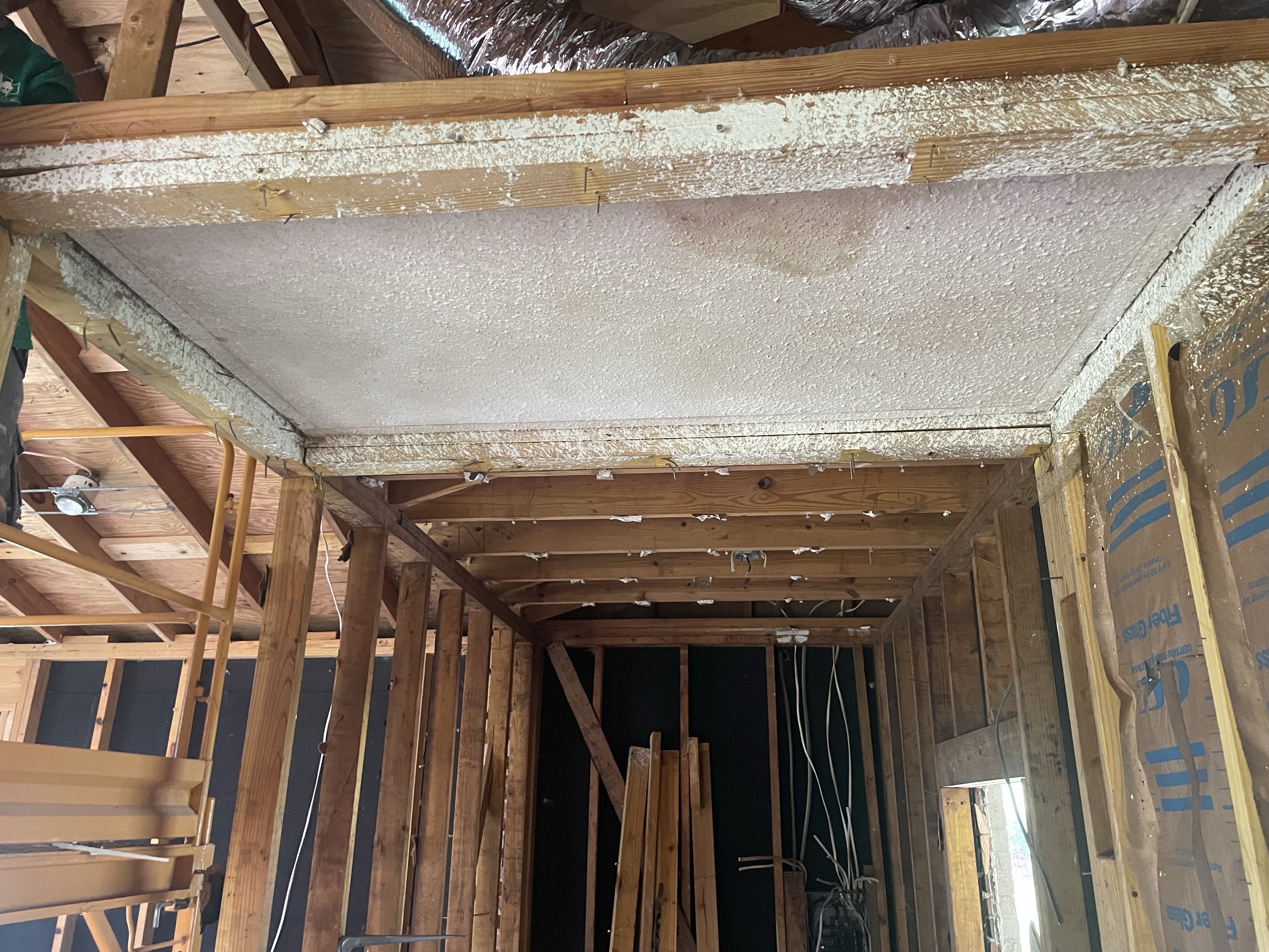 We decided to pull down all walls of drywall in the living room to completely get rid of the water damage and removed the last pieces of laundry room and hallway ceiling dry wall. We’ve said it at least 20 times so far, but I think demo is pretty much done! We have a little more demo to deal with on the not so screened in porch, but HOPEFULLY that is it!