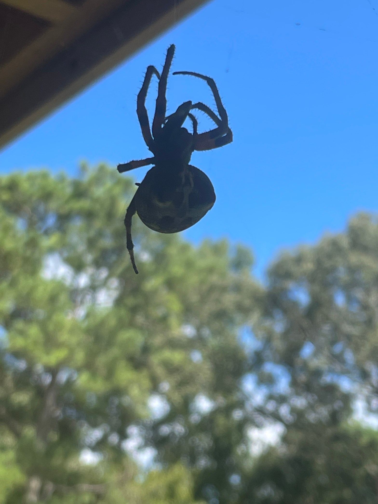 Meet Steve, the HUGE spider living on our not so screened in porch. He’s huge and I want him to die but Brady likes to watch him wrap up and eat bugs.